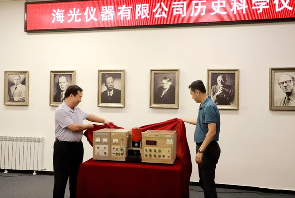 中地装集团副总经理、海光公司总经理刘海涛与清华大学科学史系主任、科学博物馆馆长吴国盛共同完成了本次捐赠产品——XDY-1双道原子荧光光度计的揭幕仪式。